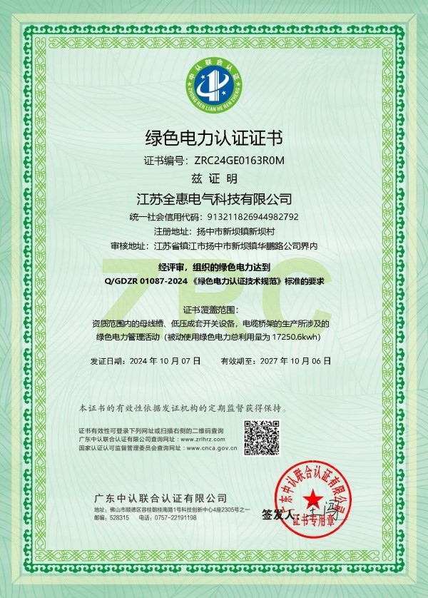 綠色電力認證證書